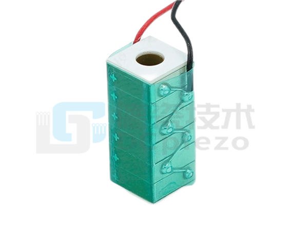 ●中孔叠堆一体化:在传统方形多层叠堆结构中心预留通孔(孔径可定制),既保留多层压电陶瓷的高出力与精度优势,又为中空通道提供稳定机械支撑,避免结构强度损失。